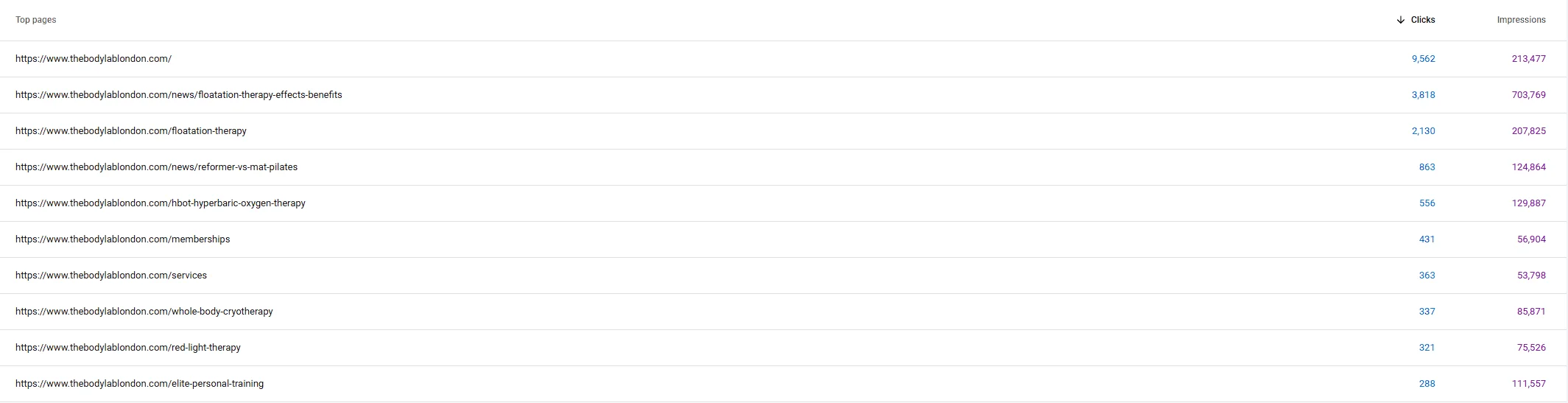 • While not visible in data, newer service pages, such as “osteopathy” reached positions 1-3 for “Osteopathy Kensington” within the first month of launch. I would pair these launches with supporting content, such as “How often should you see an osteopath?”, to help establish greater topical relevance.